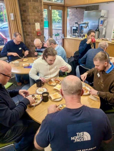 We have strong ties with Holy Trinity Church in Stratford-upon-Avon and were invited to start a community branch there, inspired by the spirit of WildWood. After some brainstorming, the idea for the Men’s Breakfast was born — a monthly get-together held on the first Saturday morning of each month. It’s a chance for the guys to cook together, share a meal, and — just as importantly — wash up together!